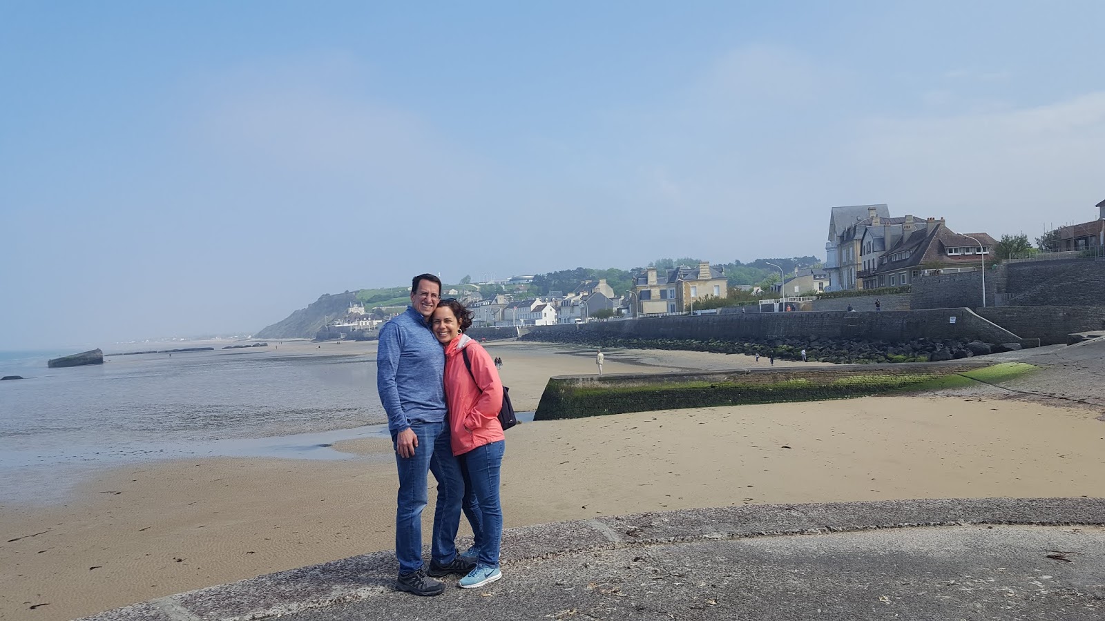 In the picture of Shana and me, you can see some "junk" in the water behind us, which is remnants from the invasion. There is actually quite a lot of that at Gold Beach where the Allies built a temporary port that was used to bring a huge amount of heavy equipment into Normandy after the beachheads were established. Apparently it was a truly impressive feat of engineering, but we were a bit surprised to see that so much stuff has just been left in the sea off Normandy for the past 75 years!
