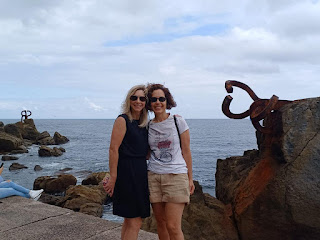 There are many beautiful towns along the coast that are an easy train ride from San Sebastián. One day we went to Zarautz, a beautiful beach town that many locals come to for vacation, and then walked to the next town over, Getaria, which is the birthplace of Juan Sebastian Elkano. Who is Elkano you ask? A Basque explorer who sailed with Magellan. The Basques point out that he was the first explorer to circumnavigate the Earth in one continuous journey. He completed his journey September 6, 1522, so 2022 is the 500th anniversary and the Gipuzkoa province celebrated that day as a holiday. We had a fabulous fish lunch overlooking the Getaria harbor, toasting Elkano and his accomplishments--and laughing at our inability to take selfies!